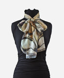 Magnolias have long been associated with divine beauty, life and joy, and now you can wrap yourself up in this floral revelry. A striped border keeps the design feeling modern, while the delicate patterns and subtle colours of this scarf will allow it to be easily paired with almost anything in your wardrobe. Dimensions are 16”X72” so this scarf is versatile enough to be worn in any number of traditional ways, or simply draped over your shoulders like a shrug or sheer wrap. Would make a beautiful and unique gift for a bride or bridesmaids.