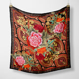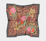 Unique one-of-a-kind, this scarf features a wearable version of one of my collages called “Marrakech Mystique”. The piece has a beautiful vibrant colour palette with captivating oversized florals and dramatic design elements that will add instant sizzle to any outfit.