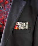 This pocket square features a wearable version of one of my collages called “The Passion of Pele”. The piece has a beautiful warm and vibrant colour palette with fiery design elements that will add instant style to any suit.