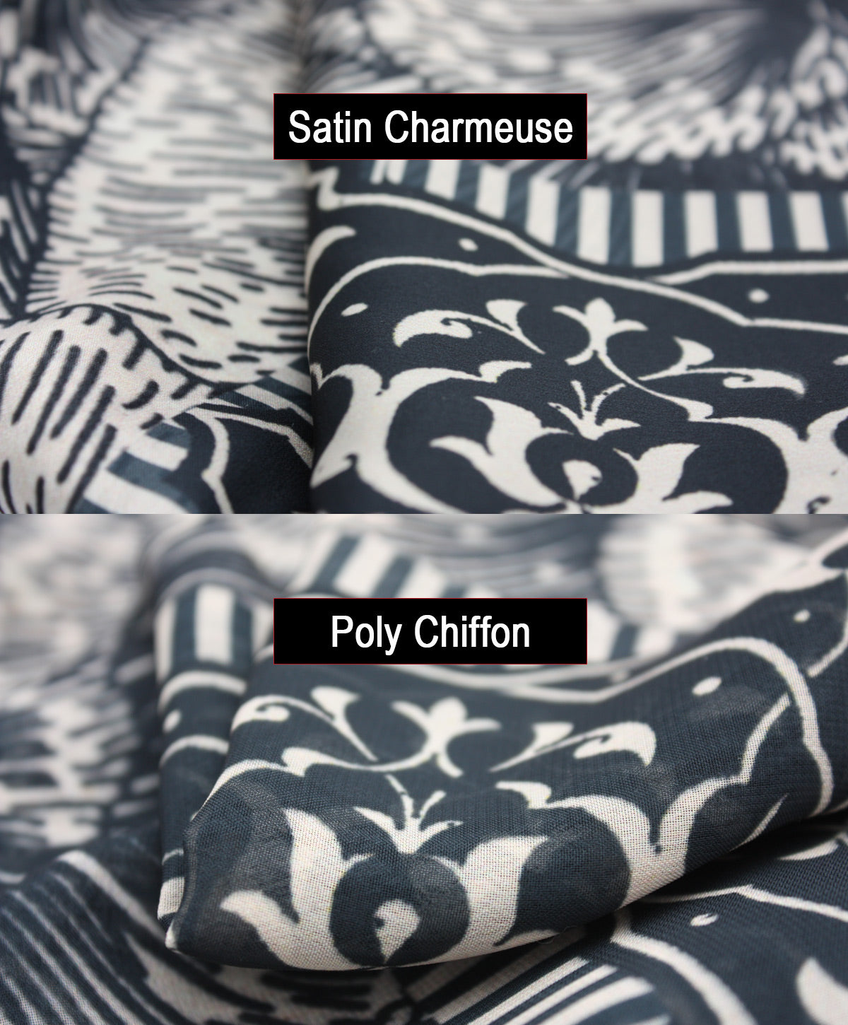 - High shine enhances prints and the fabric has high drapability. Silk charmeuse flows beautifully and has a liquid-like texture which makes it feel wonderful to wear.