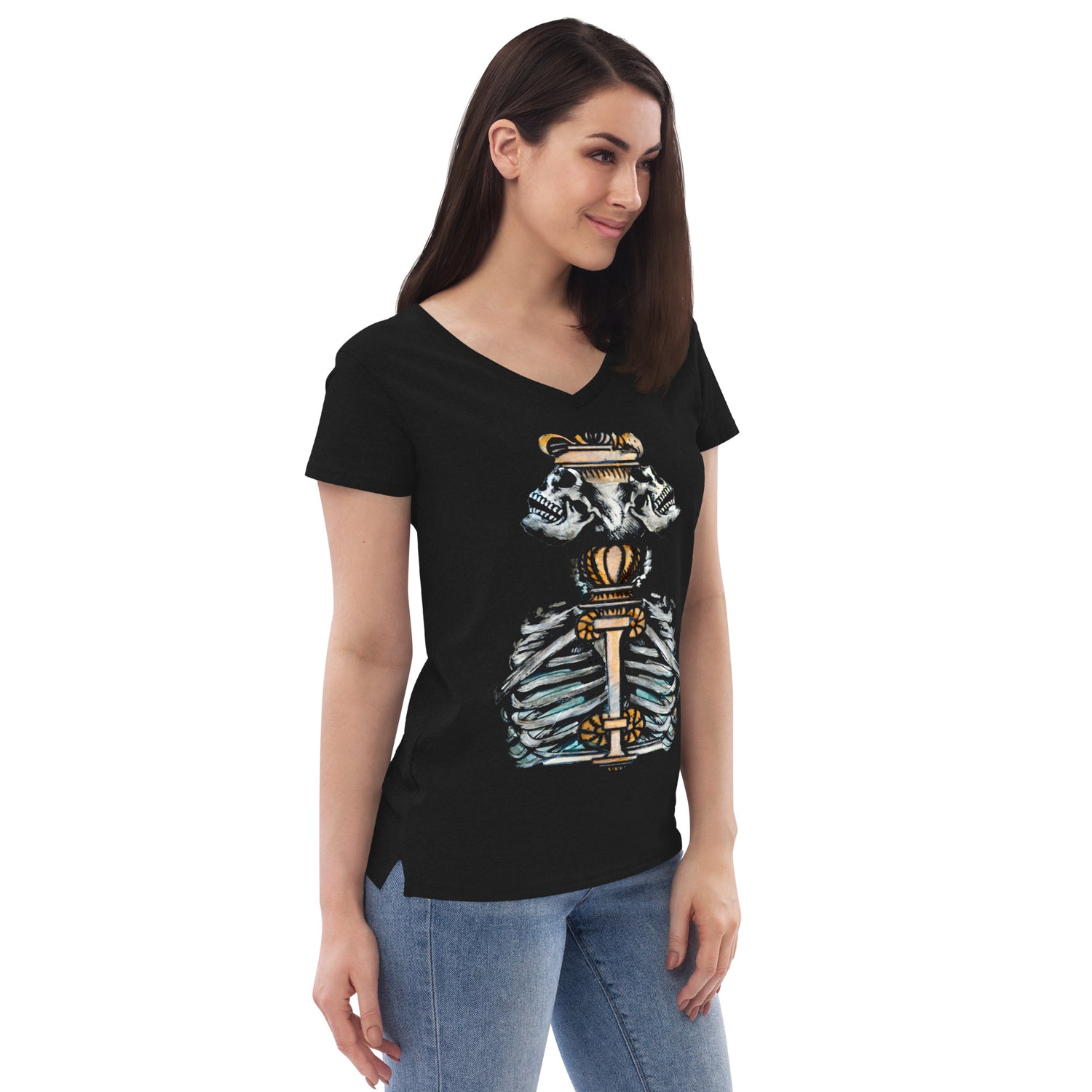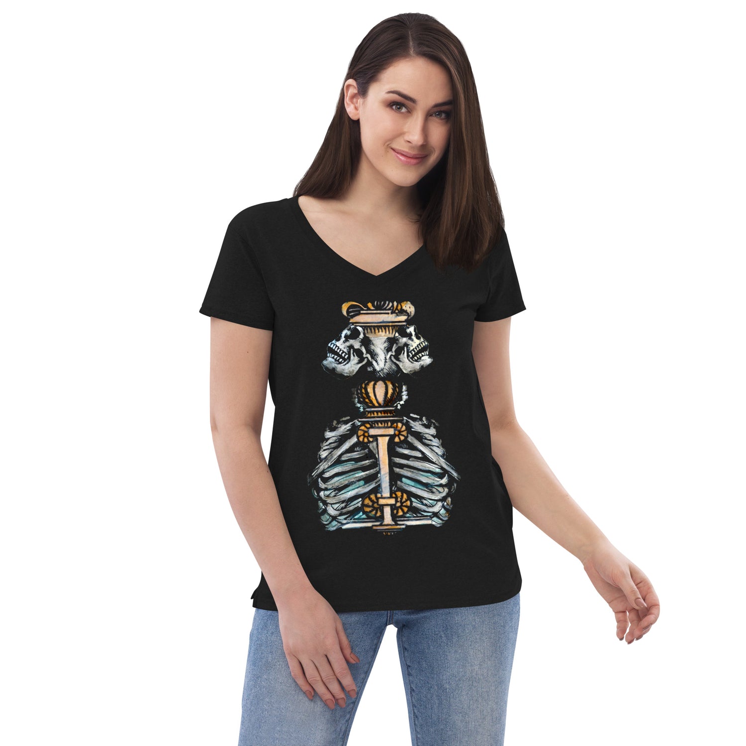 Soft and comfy recycled women’s v-neck with a feminine, relaxed fit. The flattering cut is offered in sizing that ranges from small to 4XL and this tee is made from 100% recycled fabric so that makes it a perfect eco-friendly choice. Please note that contrary to most of our shirts, the recycled fabric is a blend of cotton and polyester.