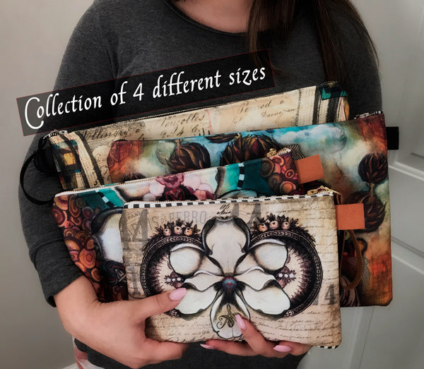 These zippered Carry All bags are hands-down one the most versatile products you'll come across. The exterior features gorgeous artwork in vibrant colourfast prints on durable poly canvas. Available in four different sizes ranging from 10” wide - 16” wide to suit all of your needs - really!